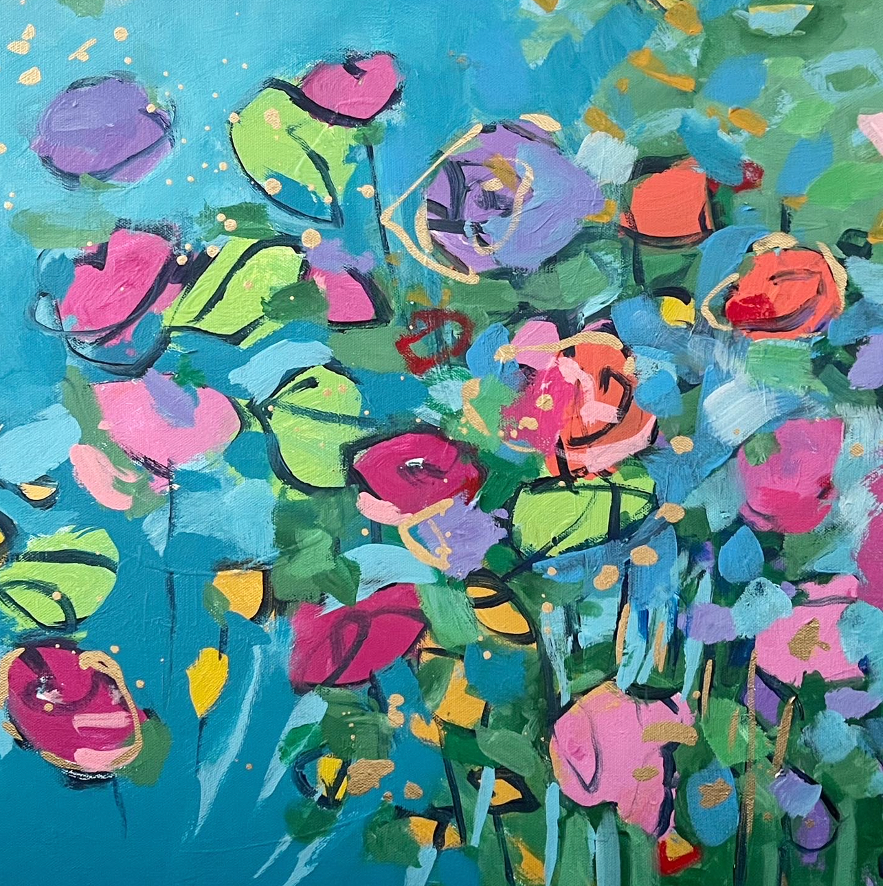 I am so happy to have you here. Welcome to my studio, my heart, and my life. I am an artist, painter, and dedicated creator whose mission is to spread joy, color, and connection through paint.