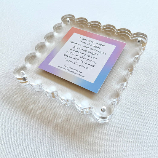 I live in Phoenix, Arizona with my hubby, two daughters and my shih tzu Ellie (who thinks she’s human). I work from my home studio which is where the magic happens, spilling from the canvas and into every unique piece I create. I have paint on my phone case and most of my pajamas.