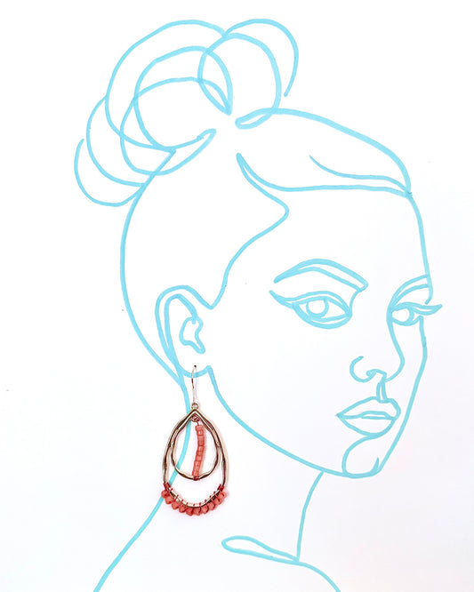 Coral and Gold Teardrop Earrings