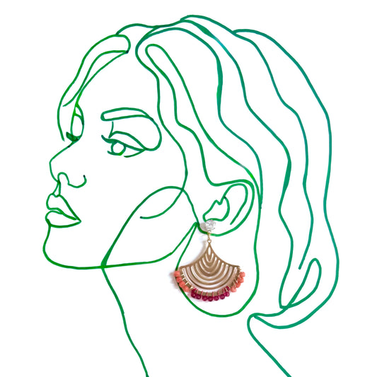 Coral and Pink Chalcedony Gemstone Wrapped Fan Earrings