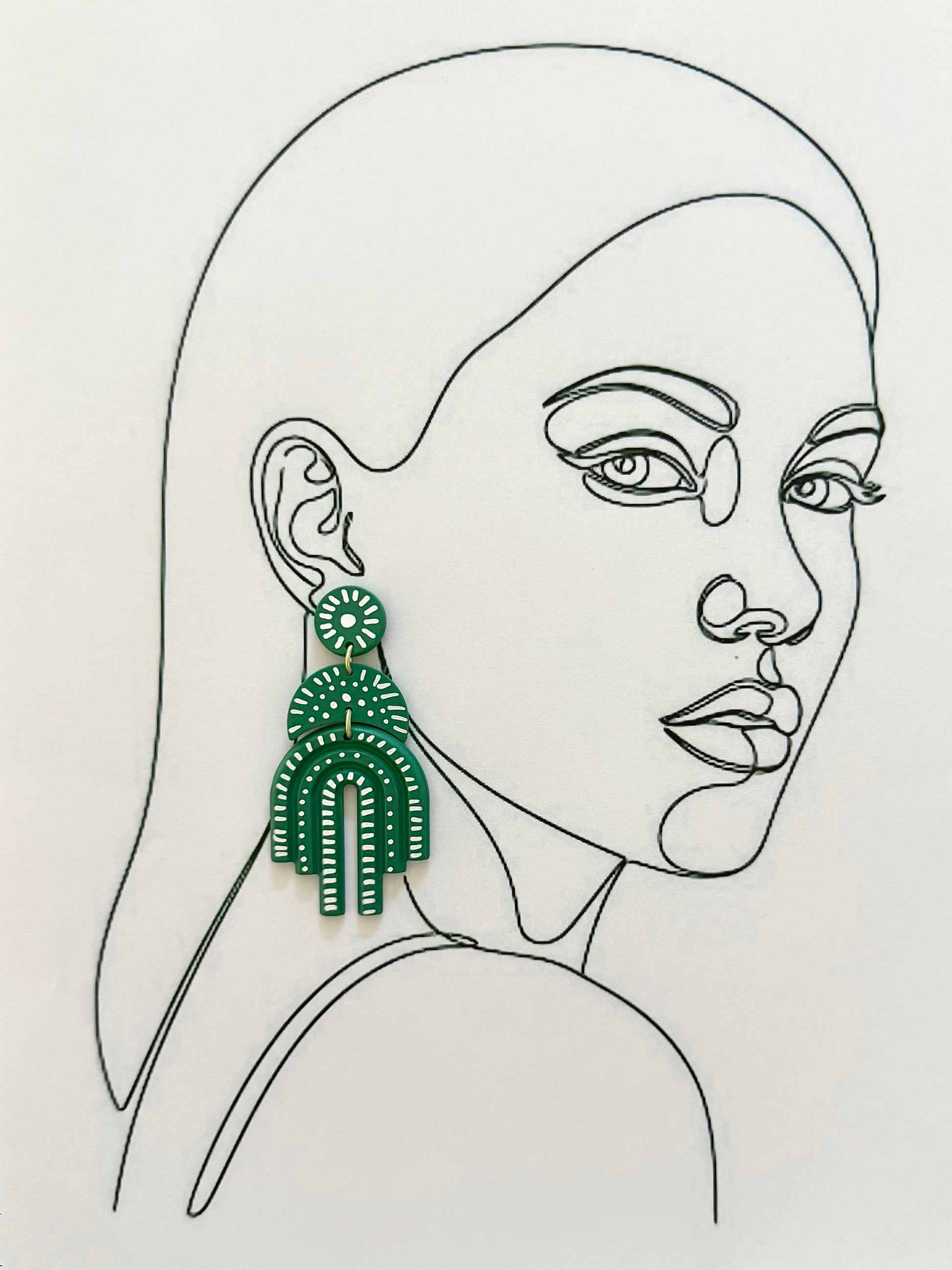 Hand painted and varnished polymer clay earrings. Earrings to scale on drawn model. From my Autumn Atelier Collection 2025.