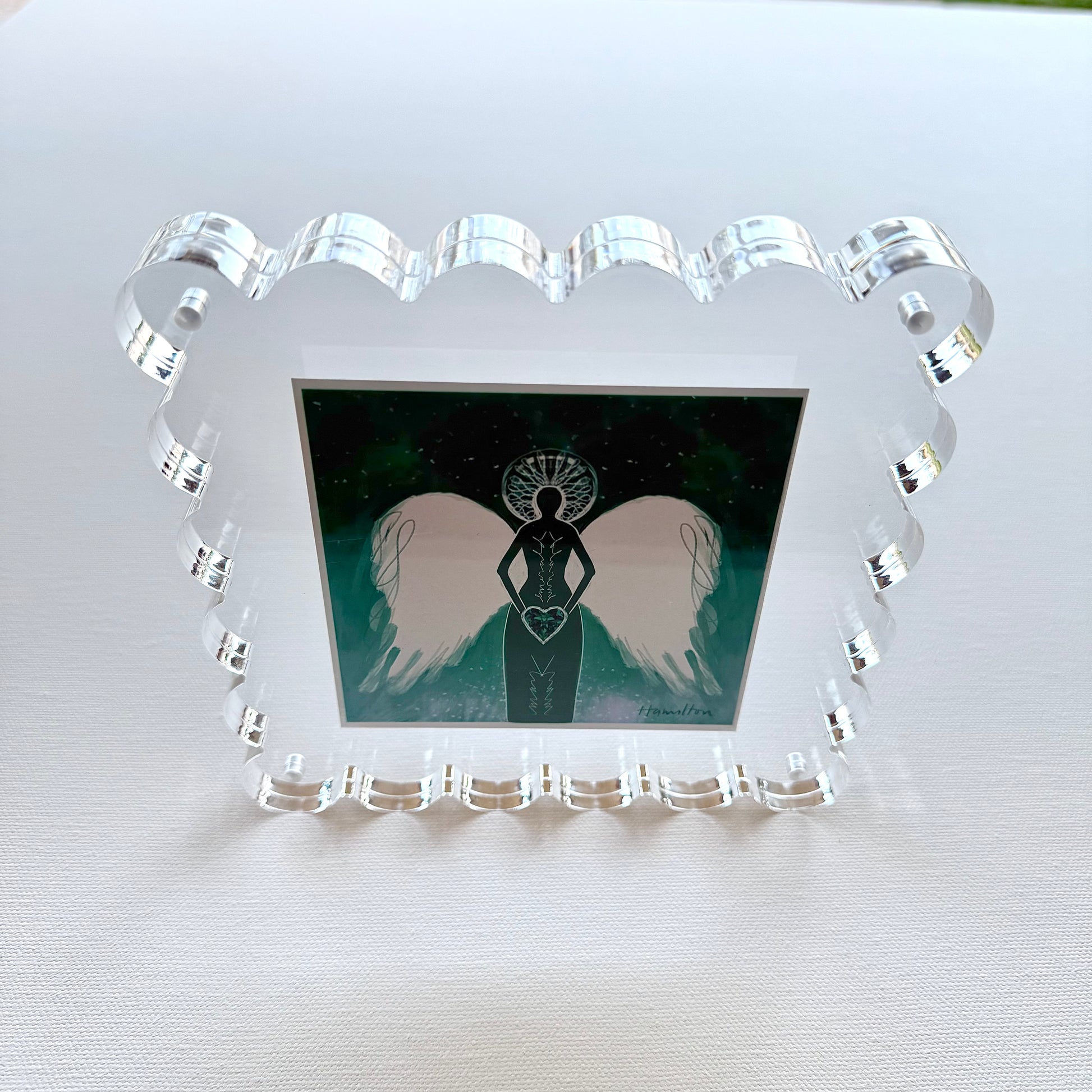 • A Symbol of Light: The entire piece is beautifully framed in an elegant 6" x 6" scalloped acrylic frame, designed to be freestanding for effortless display on a desk, shelf, or nightstand.