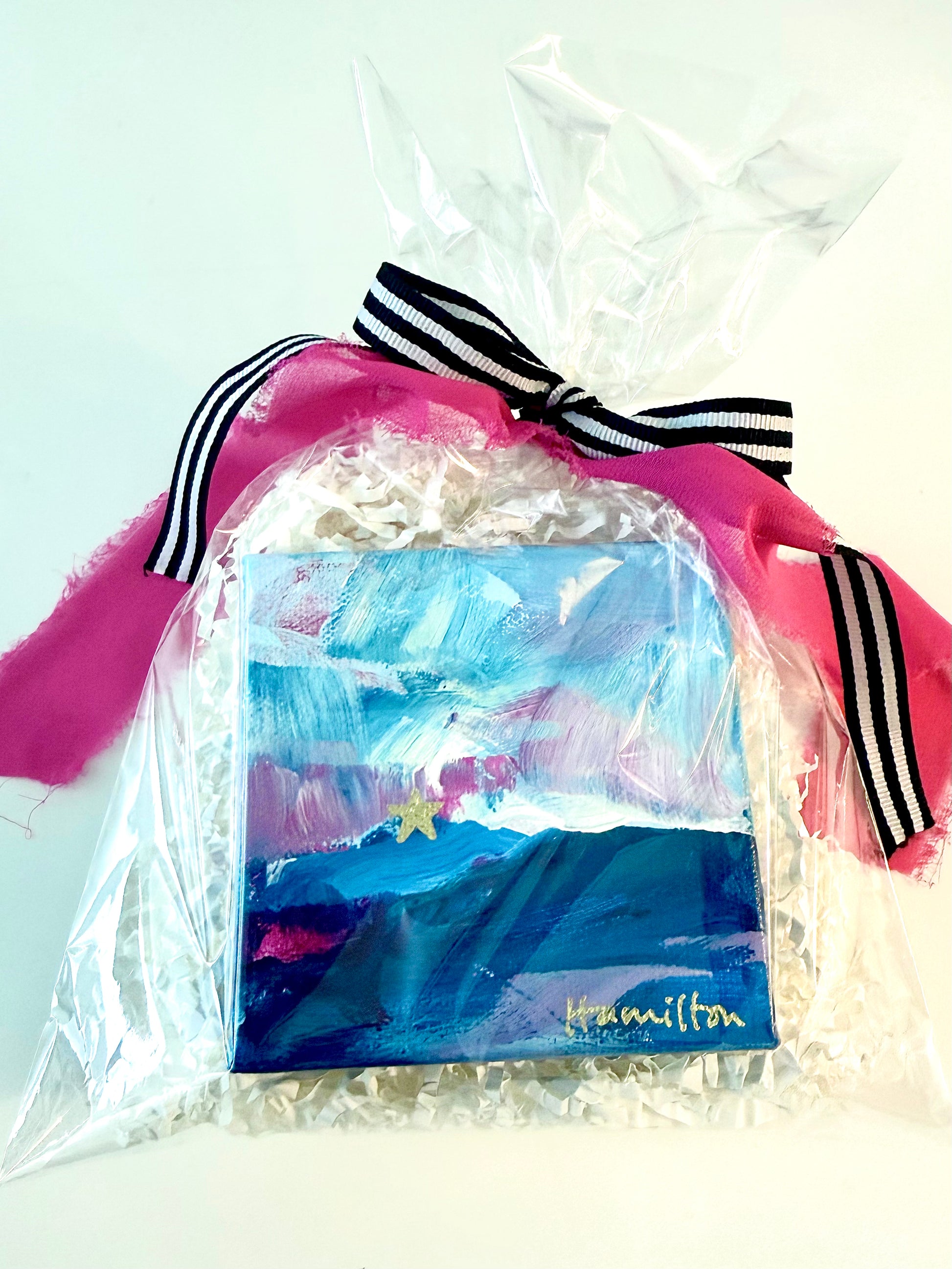 Giftable little shelfie of the iconic Mill Mountain Star in Roanoke Virginia! A 4” x 4” original painting stretched canvas with metallic gold star accent.