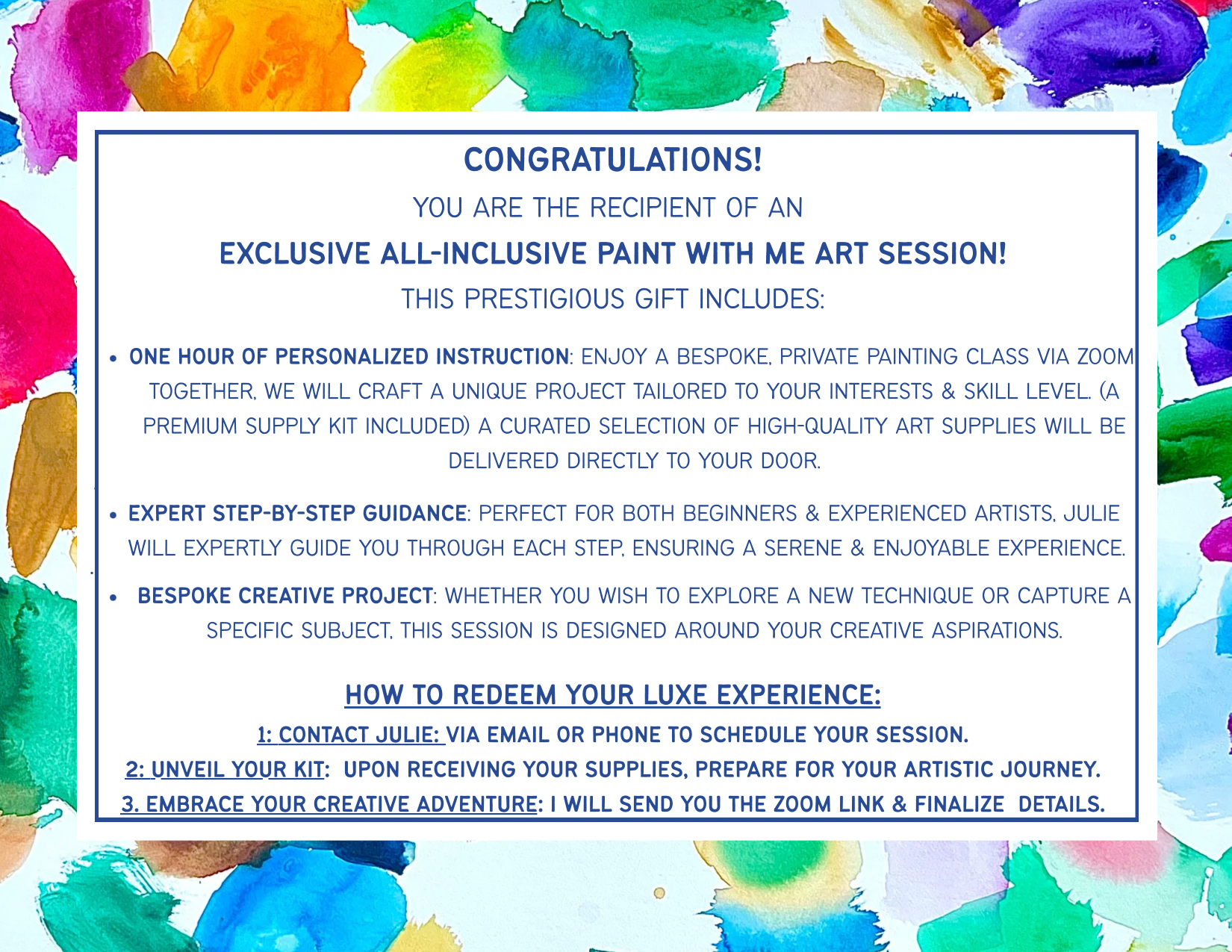 Forget boring gifts! Give an experience that sparks joy with my PAINT WITH ME Gift Certificate. This is a perfect treat for the creative soul in your life—or a fantastic way to gift yourself a moment of artistic fun!