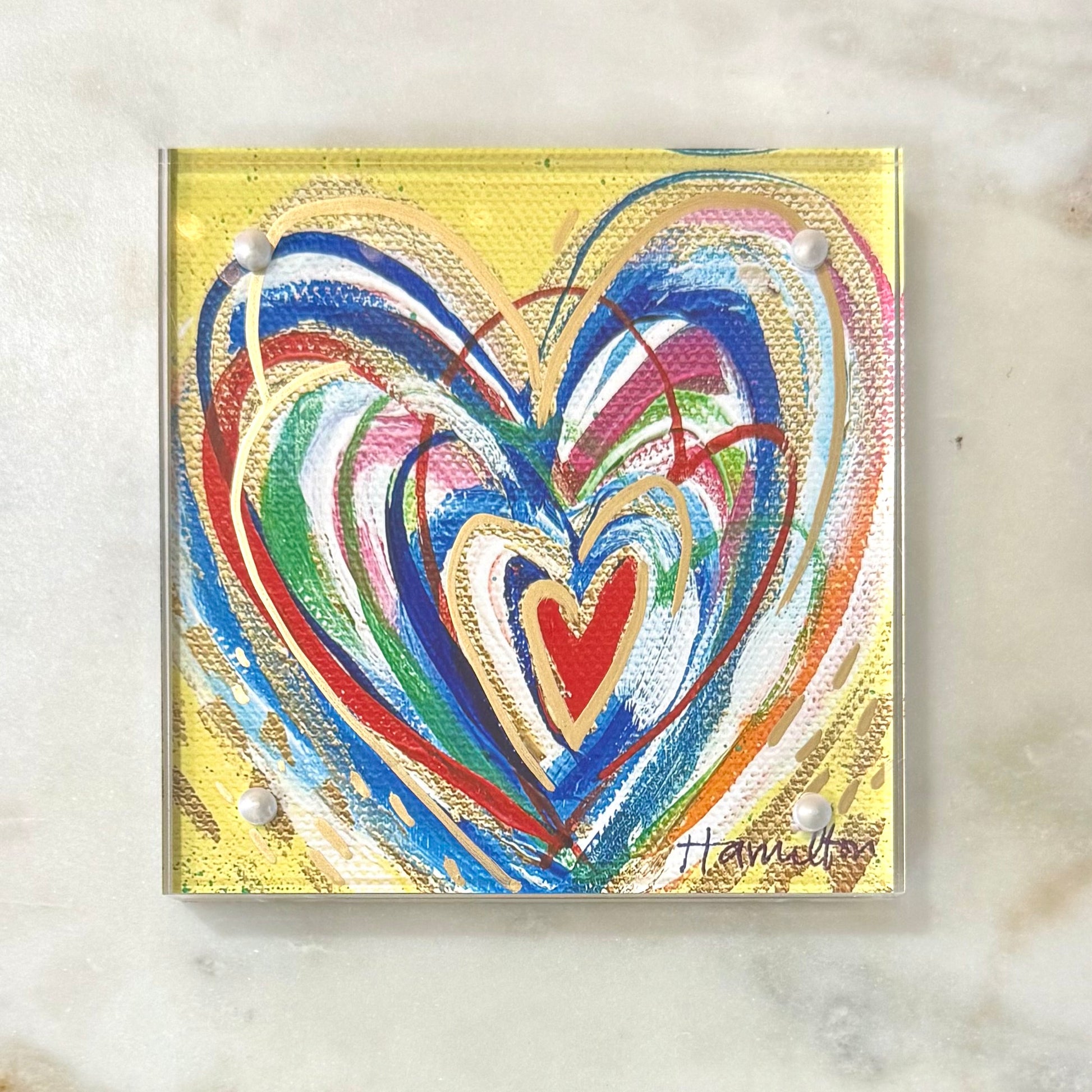 Each piece in the I Carry Your Heart series is a vibrant meditation on the depth of human connection. Through dynamic layers, bold, expressive color, and luminous metallic accents I added to each print, I sought to capture the feeling of holding a beloved’s essence—a secret, sacred space "greater than the stars."
