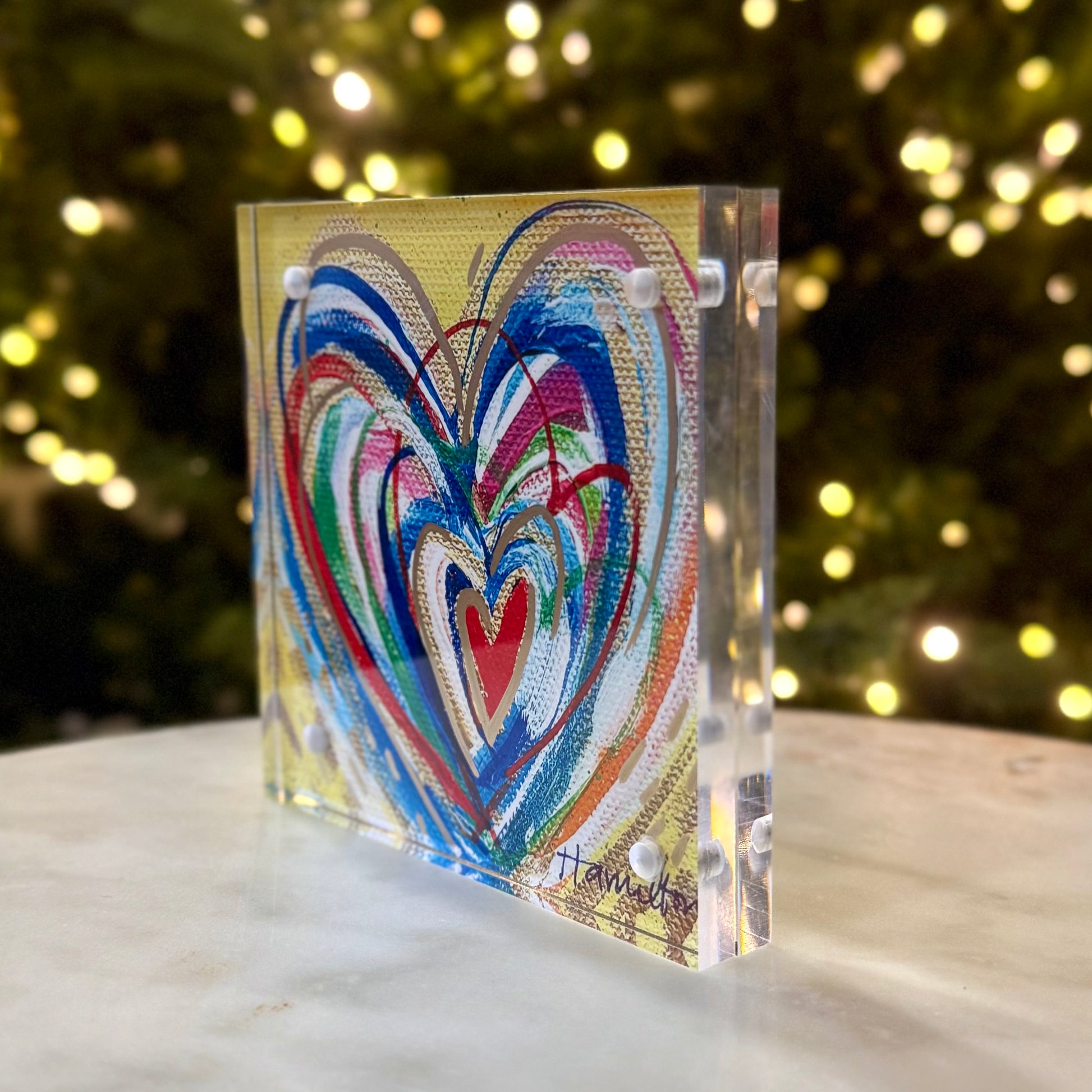 A 4” x 4” digital print and poem in acrylic frame.