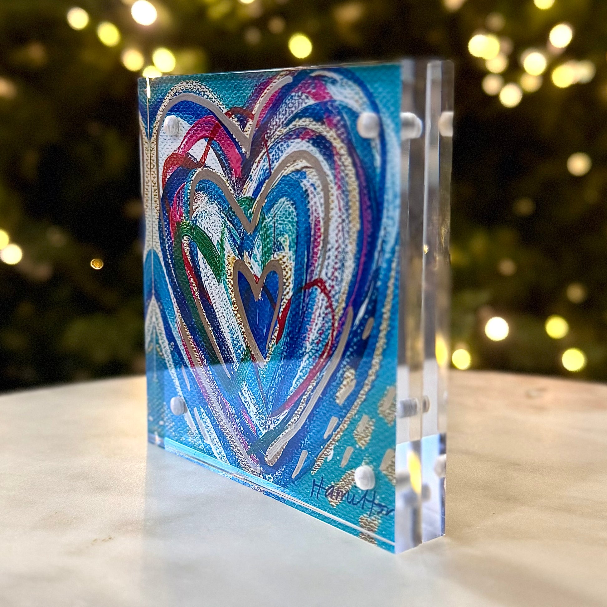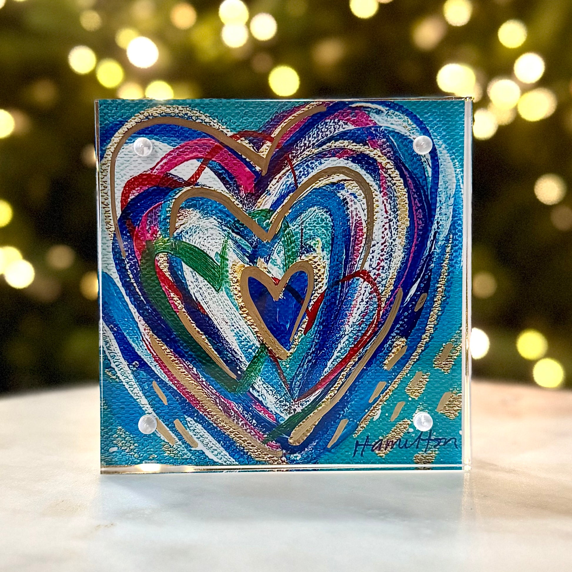 Each piece in the I Carry Your Heart series is a vibrant meditation on the depth of human connection. Through dynamic layers, bold, expressive color, and luminous metallic accents I added to each print, I sought to capture the feeling of holding a beloved’s essence—a secret, sacred space "greater than the stars."