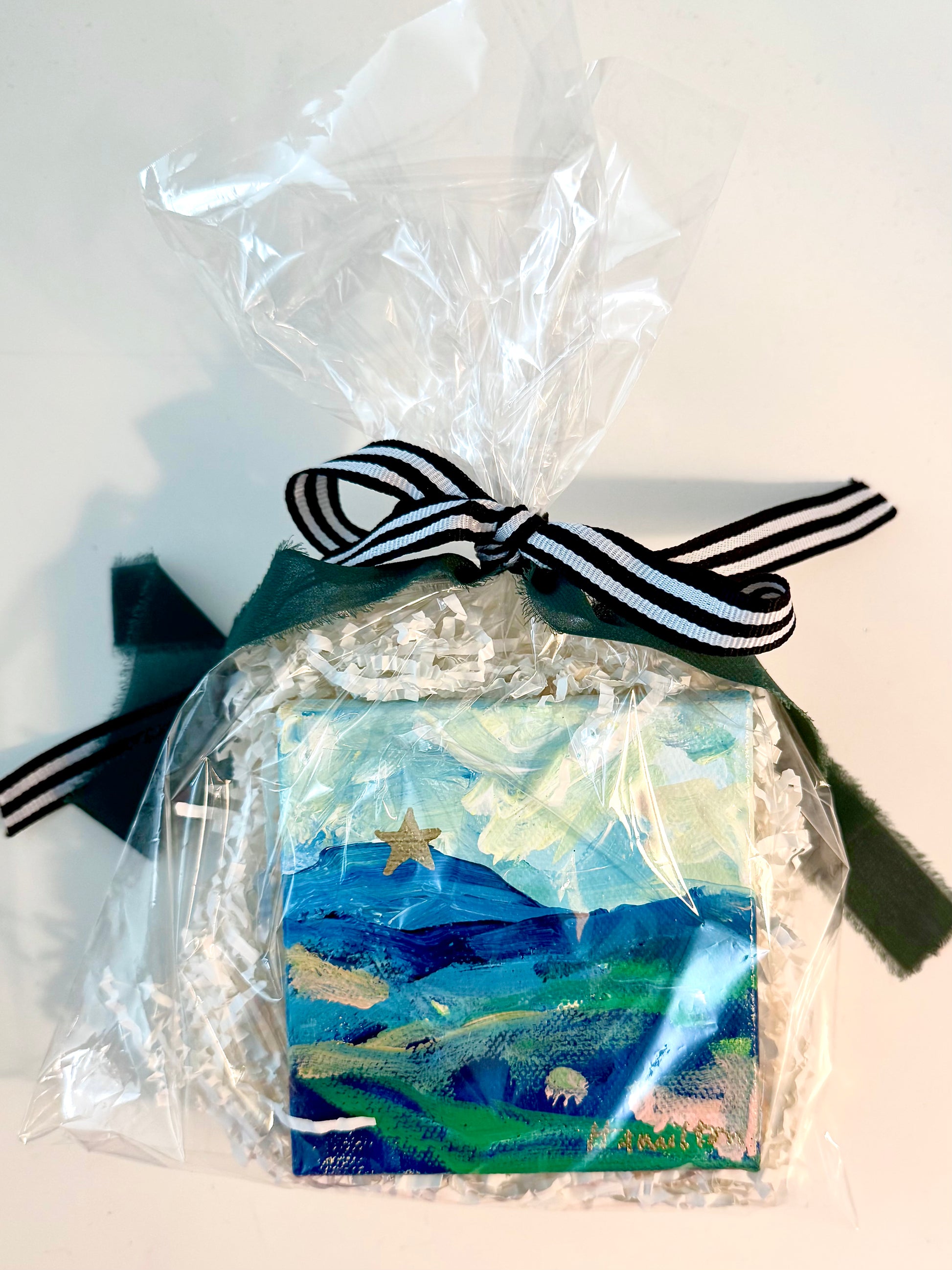 Giftable little shelfie of the iconic Mill Mountain Star in Roanoke Virginia! A 4” x 4” original painting stretched canvas with metallic gold star accent.